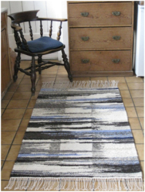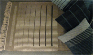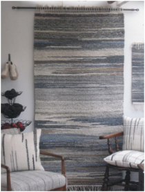Herdwick, Jacobs and Cotswold wool used in the wallhanging/rug. Cotswold wool and angora in natural shades were used to good effect on these cushions and the chair is covered in a handspun